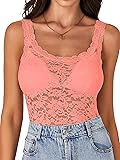 Features: Scallop sexy spaghetti strap, square neck, sleeveless, pretty floral lace, casual style and slim fitting. This premium tank has delicate lace for a dressy take on your everyday tank, update your basic tank for a fresh take on your everyday top.