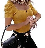 • ★ Unique Design: Square neckline with V shape cut-out, puff short sleeves decorated with some ruched make you more elegant and chic.