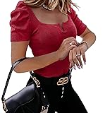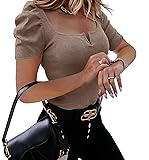 Valphsio Womens Puff Short Sleeve Top Ribbed Knit Features