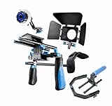 This rig set includes a DSLR rig and a Matte Box. It is specifically designed to allow DSLR Camera users to produce high quality videos. The aim of this kit is to provide the operator maximum flexibility while shooting both outdoors and indoors. This rig set is compatible with any standard 15MM rail system for your DSLR rig or cage. It is designed for handheld use. This makes it possible to deliver excellent results without any jerk or motion problems. Make you shoot or video production steady, precise and smooth. It also eliminates the fatigue brought about by trying to balance your video camera or DSLR. The configuration of the rig is very quick and easy and requires no tools. The adjustable shoulder pad has comfortable silicon rubber layer to protect your shoulder. This is one of the best kits at this price point available on the market. Hurry, this hot ticket item is going fast! Buy now and reward yourself with versatility and efficiency to make your filmmaking life move faster and easier. Specification: DSLR Shoulder Mount Rig: Material: Aluminum Alloy, Nylon and ABS Dial Fit Rail Distance: 60 mm Fit Rail Diameter: 15 mm Matte Box: Compatible with 15mm rail rod support system Hole diameter: 80mm Package Include: 1x DSLR shoulder mount rig 1x matte box 1 x Should pad Buy in confidence: One year warranty 7 days 24 hours customer service Quality Check before shipped, saving your time!
