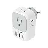7 in 1 US to Europe Plug Adapter: This European adapter can turn 1 EU type C socket into 4 American AC outlets and 3 USB ports, max capacity up to 2500 watt (max 250 Volt, 10 A); 4-side design can charge 7 devices at a time without blocking, compatible with laptops, camera and more devices