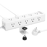 15 outlets desk clamp power strip with QC 3.0 USB A and PD 3.0 USB C ports, and two ordinary smart USB ports. Come with 15 ft right-angle flat plug can easy to plug in hard-to-reach outlets. Great addition to desk edge workspace.