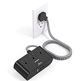 【Ultra Thin Flat Plug & 6Ft Extension Cord】- With only 0.35 inch ultra thin plug and 45° right angle design, the flat plug power strip is much thinner than traditional plugs, which can close to the wall easily, and hide in the back of furniture, bed or refrigerator; 6ft extension cord is made of pure copper, which has better current carrying capacity (15A). The braided power cord is not easy to deform, durable and more safety