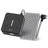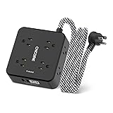 【10 Ft Braided extension cord with Flat Plug】- 10 Feet Right Angled Flat Plug power cord makes it more flexible, the two mounting holes on back allows this power strip to be securely installed in various applications. Environmental protection and fire-resistance PC shell with flame retardant at 1382℉ makes it more durable and longer lifetime.