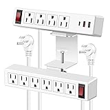 2 IN 1 Desktop Edge Power Strip:One clip combined with 2 sockets Power and Charging All in 1 This Power strip with 4AC Outlets and 1 USB-A port,1 QC3.0 USB-A port, 1 PD Fast Charging USB-C ports. There is also a 6AC socket with a switch on the lower part of the desktop.