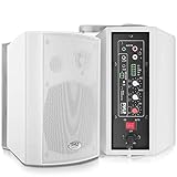 Wall Mount Home Speaker System - Active Passive Mountable Bookshelf Indoor Studio Garage Patio Stereo Sound Home Theater Speaker, Wireless Bluetooth Speaker Set W/Aux & RCA - Pyle PDWR53BTWT (White)