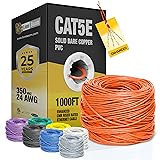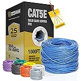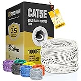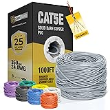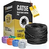 Your Perfect Ethernet Cable Box: This box has an endless 1000 feet of Premium Cat5e ethernet cable, conveniently pre-spooled in a tangle-free, easy-pull box with a smooth and fast reel. It comes with a rip cord and is covered with solid, strong insulation. It is conductive and flexible, making installation smooth, easy, and perfect. Plus, it's protected by a 25-year Warranty.