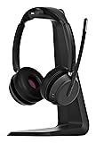 The EPOS IMPACT 1060 is a premium wireless headset with mic, designed for professionals in open offices, remote work, and hybrid environments. Featuring EPOS AI adaptive microphones, it delivers industry-leading voice pickup, eliminating background noise for crystal-clear calls on Microsoft Teams, Zoom, and Skype. Experience super wideband audio for natural speech clarity, making conversations sound more lifelike. Whether you're in business meetings, customer service, or virtual calls, this Bluetooth headset for work provides exceptional sound quality. Built for comfort, the lightweight design, breathable ear cushions, and padded headband ensure all-day wearability, making it an ideal PC headset for work, office headset, or call center headset. Its 360-degree busylight reduces interruptions by signaling when you’re on a call. With triple wireless connectivity, you can seamlessly switch between PC, laptop, smartphone, and tablet, ensuring uninterrupted productivity. Smart intuitive controls let you mute calls by moving the boom arm, while the contactless charging stand keeps your headset powered at all times. Perfect for hybrid workers, office professionals, and business communication, the EPOS IMPACT 1060 is a wireless PC headset for work, Mac, Windows, and mobile devices, delivering clear sound, noise reduction, and effortless call management."