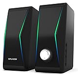 Computer Speakers, PC Speakers with 6 Lighting Modes, USB Powered Computer Speakers for Desktop Monitor with 2 Bass-Boost Ports, 2 Speaker Units, and 3.5mm Aux-in Cable for PC, Laptop, Tablet, Phone