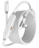 [16ft High-Quality Flexibility] Made from highly durable materials, this cable features excellent stretch and abrasion resistance. With a length of 16ft, it allows ample space for free movement while gaming in VR. The reinforced L-shaped Type-C connector and anti-slip design ensure reliable performance over long-term use without worrying about breaks or wear. The unique Velcro strap keeps a stable connection during intense gameplay