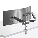EASY TO ADJUST: The dual monitor arm offers swivel: +/- 90° rotation: 360° to tilt: +/-90° and height adjustment along the vertical pole. Monitor can be placed in landscape or portrait direction.