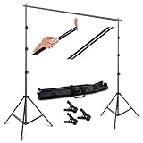 CARRY EASILY - The background frame can be split and folded, and can be disassembled into three crossbars and two tripods. The tripod can be shortened in height, and has a carry bag for easy carrying.