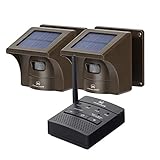 Solar Wireless Driveway Alarm features The Solar Motion Sensor with Wireless Motion Alert is a convenient and affordable safety/security system. 1.weatherproof outdoor solar sensor with adjustable sensitivity control. 2.The solar sensor may be placed up to a 1/2 mile from the base unit in ideal condition. 3.Alerts with light and sound when vehicles or pedestrians approach within a 30 feet radius. 4. Expandable up to 4 solar sensors and unlimited receiver, it is perfect for home, business, property, and worksite. 5. Super simple to set up. Takes only a few minutes to set up. Easy do it yourself installation. 6.The set includes one solar sensor/one receiver. Detects motion in up to 4 different zones, Low battery indicator included. 7.A receiver can be plugged in using the included AC adapter or can run on (4) AAA batteries.