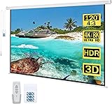 120”Motorized 16:9 Projector Screen W/ Remote Control - Experience a whole new dimension of gaming and watching movies with the HD 120" motorized projector screen.Transform your home lounge with 3D and HD compatibility, bewilder your friends and family with this professional setup. - A RF remote control is included so you can retract or extend the screen from the comfort of your couch. - This high-quality screen is Perfect for Home Theater, Classroom, Conference Room, Public Display, etc. Size and Aspect Ratio - Diagonal: 120" - Aspect Ratio: 16:9 - Viewing Area Size dimensions: 104.7" × 58.66" - Product Weight: 24lb Screen Material - High contrast 1.2 gain screen that is washable with soap and water - 1" black masking borders to enhance picture contrast - 180° viewing angle perfect for residential or commercial use - 3 layer black backed screen which eliminates light penetration and produces top quality color reproduction - Washable, stain-resistant and flame-retardant fabric - Smooth & Quiet Motor (