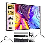🎬【Easy Setup and High Quality Accessories】LEORFI 150-inch projection screen adopts a minimalist splicing integrated design that can be easily set up in 5 minutes. The projection stand and crossbar are made of high quality frosted steel pipe with anti-rust paint surface, no need to worry about rusting and bending. Triangular bracket structure with ropes and ground spikes makes it more stable, and upgraded projection screen to ensure your viewing experience even in windy conditions
