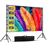 【Portable & Foldable】 Portable projector screen fits in the included carry bag and at only 11.8 pounds. It is small in size and light in weight, and can be easily placed in the trunk of the car, bringing a theater-like experience to any event. Enables usage in outdoors or indoors, any venues, any entertainments: home, school, office, camping, conferences, weddings, parties, movies, TV shows, video games.