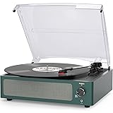 BELT-DRIVEN ANTI-VIBRATION SYSTEM - The turntable base is equipped with a spring and belt-driven design to provide shock absorption and improve sound quality. An easily removable dust cover protects your vinyl records from damage