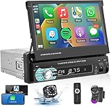 【Compatible with Apple Carplay & Android Auto】Single din car stereo with 7 inch LCD flip out touchscreen, built-in Apple Carplay and Android Auto, allowing superior voice assist control and making it easier to access your phone functions including music, GPS navigation, calls, notification, messages and much more.