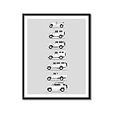 Idea Network Handmade Poster compatible with Toyota FJ Cruiser Print Wall Art Handmade Decor of the BJ, FJ25, FJ40, FJ43, FJ45 Generations History Evolution (16x20" Print (Unframed), Metallic Paper)