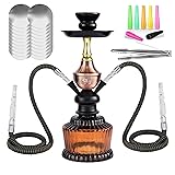 【HOOKAH SET WITH EVERYTHING】The package includes 1 hookah glass base, 2 hoses, 1 center pole with glass accessories, 1 downrod, 1 ash tray, 1 ceramic bowl, aluminum foil, disposable tips, all hookah grommet, and 1 clip.