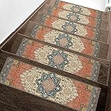 【Elegance & Durability】These stair carpet treads blend vintage light taupe brown floral patterns with ultra-soft polyester for comfort, noise reduction, and cushioning. Note: Product images are taken in natural daylight for accuracy, but colors vary slightly under different indoor lighting conditions.
