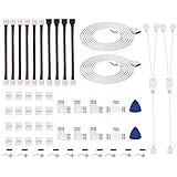 This 5050 4 Pin LED strip light connnector kit provides the most parts you need for a DIY LED strip light project. ●The RGB extension cable is for 5050 RGB Color Changing LED strip light, electrical appliance and equipment, transformer, lamps and motor lead wire connection, led splitter connection, bending a strip around corner etc. ●The LED strip jumper connector is used for connecting RGB 5050 flexible LED light strips and strip segments around corner. ●The l shaped led strip connector is used when you need to spring your light strips around sharp 90 degree corner. ●The gapless led strip connector helps connect two RGB 5050 flexible LED tape light and strip segments easily and quickly without soldering. ●The LED strip clip is easy to fix the light strip by one screw, and take down the LED strip light from the other end freely when replace or maintain it. Warm Reminder: If you meet any problems during installation, please contact us by email on Amzon of "Ask a question" button, you will get a reply within 24 hours. Package Includes: 1 x 32.8FT RGB extension cable 10 x LED strip jumper connector 2x strip to RGB controller jumper 10 x L Shape Connectors 2x T Shape Connectors 10 x Gapless LED strip Connector 20 x LED strip light clips 10x 4 Pin Male Connector 2x Pry opening tool