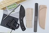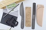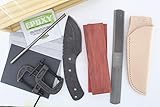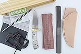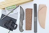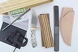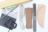 This is an AWESOME gift for someone wanting to get into knife making. Crate comes with everything you need to complete this custom knife. (hammer and drill required for optional pins) Crates come gift packaged with the following items: Indicated blade, Indicated handle material, handle pins, 2 part epoxy, 4 sided rasp, Knife making instructions, 2 c-clamps, 1/2 sheet of 150, 220, 320, and 800 grit sandpapers, USA made high quality leather sheath. All Photos are of comparable items, subject to change