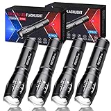 5 MODES & ZOOMABLE LED FLASHLIGHTS - These tactical flashlights are equipped with 5 Modes (High | Medium | Low | Strobe | SOS) for your daily use or in any emergent case. With a full-press to power on and off and a half-press to switch lighting modes, simply rotate the flashlight in or out to get a floodlight or spotlight in different situations.