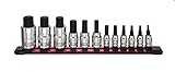 Metric Sockets For Nearly Any Job The ARES Metric Hex Bit Socket Set includes twelve hex bit sockets to help you accomplish a wide variety of tasks. The sockets are made of heat treated Chrome Vanadium steel and feature knurling for enhanced grip. The hex bit ends are made of premium S2 steel and their precise CNC machining ensures accurate size and fit, so they insert smoothly into fasteners, protecting both fasteners and bits from damaged edges. With the bonus universal aluminum storage rail, you can choose how you keep your hex bit sockets organized and save space in your tool box! Features: Includes: 12 pc. Metric hex bit sockets, 1 pc. storage rail, and 12 pc. storage clips 1/4-inch drive: 3mm, 4mm, 5mm, 5.5mm, and 6mm hex bit sockets 3/8-inch drive: 7mm, 8mm, 9mm, and 10mm hex bit sockets 1/2-inch drive: 12mm, 14mm, and 17mm hex bit sockets Sockets are made with Heat Treated Chrome Vanadium steel Knurling for enhanced grip CNC machined bits are high strength S2 steel Chamfered bit ends insert smoothly into fasteners Universal storage rail constructed of aluminum Storage rail also compatible with ARES 70081, 70082, and 70083 socket clips