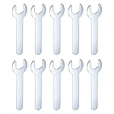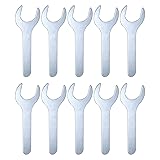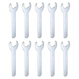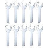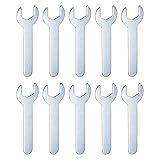Size - Open end: 5.5mm / 0.22"; Open outside width: 17mm / 0.67"; Total length: 66mm / 2.6"; Stem thickness: 1.5mm / 0.06"; Stem width: 10mm / 0.39"; Color: Silver-grey; Package includes: 10 x Single open-end wrenches. The open wrench set is thin enough to work on tight spots.