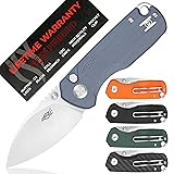 • ✅【Ergonomic G10 Knife Handle with Deep-carry Pocket Clip】G10 is very durable composite material. It is stronger than usual plastic. This material does not fade in the sun, is not susceptible to water, can withstand severe mechanical stress. This lightweight pocket knife has reversible deep-carry pocket clip and a lanyard hole for EDC.
