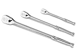 PREMIUM CHROME VANADIUM STEEL & FULL POLISHED EXTRA LONG HANDLE: This 3/8 inch 90 tooth ratchet is made of high quality chrome vanadium steel for strength and durability. Bright, full polish chrome finish wipes clean easily and ensures durability and corrosion resistance. Smooth comfort-grip handle permits all-day use without gloves. 12" extra long handle is specially designed for tiny, compact and narrow working environments
