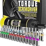 32-Piece set: 1 x Torque screwdriver, 30 x Bits: 4 x Phillips bits: PH0, PH1, PH2, PH3; 6 x slotted bits: SL3mm, 4mm, 5mm, 6mm, 8mm, 11mm; 8 x Torx bits: T6, T8, T10, T15, T20, T25, T30, T40; 4 x SAE Hexagon bits: H3/32", 7/64", 5/32", 3/16"; 7 x Metric Hexagon bits: H2mm, 2.5mm, 3mm, 4mm, 5mm, 6mm, 8mm. 1 x 1/4" hex to 1/4" driver socket adapter,1 x 1/4" socket to 1/4" hex adapter, and protective hard case