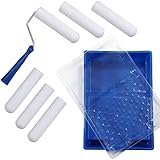 Mini Foam Paint Roller Cover Refills with Roller Frame, Paint Tray, Pack of 12Features:Perfect choice for cabinets, doors, metal, furniture, shelves, and moreMini Foam Paint Roller Can be used with most paints, stains, varnishes, lacquers, shellacs, waterproofers and urethanesMade with high-density foam, Provides for a smooth finish, Recommended for smooth surfacesMini Roller set with a threaded handle for ease in attachingPack includes :10* Roller Cover1* Roller frame, 1* Paint Tray