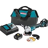 Makita delivers corded grinding performance without the cord with the 18V LXT® Lithium-Ion Brushless 4-1/2"/ 5" Cut-off/angle Grinder with paddle switch (model XAG11Z, Tool only, batteries and charger sold separately). it's powered by a Makita Brushless motor for longer run time, increased power and speed, and longer tool life. For the most demanding applications, Makita’s exclusive automatic speed Change™ technology automatically adjusts speed and torque during operation for optimal performance. For added convenience, the XAG11Z has an Electric brake that stops the wheel in 2 seconds or less upon release of the paddle switch. The XAG11Z is ideal for grinding, cutting and sanding a wide range of materials including tile, concrete, pipe, conduit, and more.