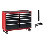The CRAFTSMAN S2000 52-in Wide 10-Drawer Rolling Tool Cabinet is Made in the USA with Global Materials and has a steel I-Frame® construction. This rolling cabinet has full extension, soft-close drawer slides with a 100-lb drawer capacity. The 5”x2” casters with over toe-locking brakes have a 1,500-lb load rating. The full-grip, tubular side handle allows for easy mobility. Safeguard tools with the internal locking system and over-molded keys. Includes Cabinet Drawer Trays and a Magnetic Paper Towel Holder.