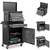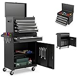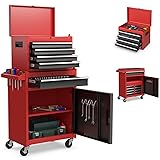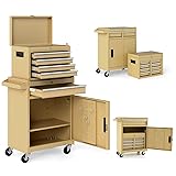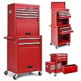【2-in-1 Chest with Detachable Tool Box】The tool chest features 5 drawers, two trays. And the whole storage cabinet can be detached into a box and a rolling tool chest, which can be used separately or together according to your requirement. When not in use, the tool box can be stored in lower chest for saving space.