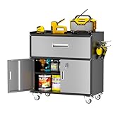 Experience the ultimate convenience and organization with the LCAOPC Metal Storage Cabinet with Wheels - a premium tool chest designed to meet all your storage needs. With its adjustable shelves and heavy-duty swivel casters, this garage cabinet offers exceptional versatility and mobility. The 360° swivel rubber casters allow you to effortlessly move the cabinet to any location, making it perfect for garages, workshops, office or any workspace. The adjustable shelves provide flexibility in storing tools and equipment of various sizes, ensuring efficient organization and easy access. Built with superior quality metal, this garage storage cabinet is strong and durable, capable of withstanding heavy loads and everyday use. The specially designed holes on the side allow you to hang hooks for added storage options, keeping your frequently used tools within reach. Three sides guardrails on top will prevent accidental slips or falls of smal tools and accessories. Invest in the LCAOPC Metal Storage Cabinet with Wheels and experience the perfect blend of functionality, durability, and convenience. Keep your tools organized, accessible, and secure with this premium tool chest. Choose LCAOPC for all your storage needs and make a statement in your workspace today!