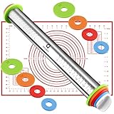 ENJOY HOME BAKING - The adjustable rolling pin in 17 inches-long can be used to create any mixture you can imagine, such as bread, soft sweets, pizza, biscuit, pie and so forth, and moreover you can teach your children to bake in the kitchen with it. If removing all of rings, it will become an original straight rolling pin. The stainless steel rolling pin is the ideal tool as well as partner for baking and cooking.