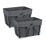 Vintage inspired wire baskets were crafted of antique finished chicken coop wire with a sturdy frame and removable, machine washable fabric linings. These baskets stylishly house everything from books and magazines to fashion accessories, hand towels, arts and craft supplies, closet shelf items, or under the counter bathroom goods. You name it! These food safe bins also make excellent storage containers for food or utensils in your kitchen or pantry shelves. With their rustic appeal, these baskets make a charming housewarming gift or can finish a space with decorative functionality. Cotton/Poly blend liners hold their size and shape when washed, making these baskets the perfect choice for use in the kitchens, playrooms, and more. DII has a wide variety of stylish organizational storage options in various colors and sizes. You are sure to find the right baskets to complete your space.
