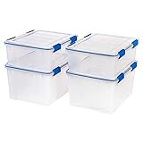 Take control of your space with IRIS USA's WEATHERPRO storage containers. Made in the USA with durable materials, these bins feature gasket seals that keep your belongings fresh and protected from moisture and dust. The multi-buckle latching system secures the lid, making these bins perfect for storing documents, food, clothes, and outdoor gear. Grooved lids and bodies allow stable stacking for easy organization at home or on the go. BPA-free and acid-free for your piece of mind. When not in use, their tapered design allows for compact nesting. Simplify your life with IRIS USA's WEATHERPRO containers!