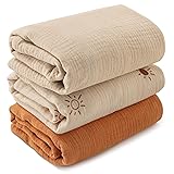 MULTI-FUNCTIONAL USES: Baby muslin swaddle blanket can be used in many different ways, support infants and parents as a tummy time blankie, nursing cover up, changing table or stroller cover. The swaddling blanket can be used all around the home or going out as they come in super handy when bathing, feeding, burping, swaddling or cleaning baby. Reusable and very soft, breathable and absorbent.