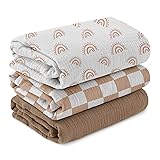 THIN, BREATHABLE & ABSORBENT: Each individual muslin swaddle blanket (38X40 inches) is thin enough to provide ample breathability, which means they can keep your little one warm and cozy in cooler weather, let their skin breathe in warmer weather. It can helps regulate your baby's body temperature and prevents overheating.