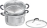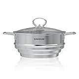 [Tri-Ply Stainless Steel for Fast Heating] – The 3-ply bonded construction, which alternates layers of stainless steel and aluminum, ensures even heat distribution, preventing hot spots and promoting faster cooking. This design helps save both time and energy.