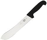 A TRUSTED FAVORITE Slices through the largest cuts of meat with ease, the 10" Victorinox Fibrox Pro Butcher Knife can handle nearly every butcher task imaginable. Crafted with a comfortable handle, superior weight and balance, and a razor sharp Granton edge that rarely requires re-sharpening, this knife is an essential tool for every kitchen. KEY FEATURES High-quality, lightweight European steel. Handle design reduces hand and wrist fatigue. Fit for cutting whole roasts and large cuts of meat. Granton edge that minimizes friction and prevents meat from sticking to blade. Flat spine for extra power to cut through tougher meat. Non-slip patented Fibrox Pro handle for a secure and comfortable grip no matter the hand size. National Sanitary Foundation (NSF) approved and dishwasher safe. CARE AND USE Be good to your knives and they’ll be good to you. Following these simple guidelines will ensure that you get the longest life out of your knife! CLEANING Victorinox Swiss Army recommends washing all knives by hand. For best results, hand wash your knives with a soapy cloth and dry immediately. While Fibrox Pro knives are dishwasher safe, we recommend hand washing as dishwashers are designed to spray water at a relatively high pressure, which can jostle the silverware and cause the knives to collide, dulling the edge. SHARPENING For optimum performance, knives should be honed after every couple of uses. Proper and frequent use of a honing steel will keep your knives sharper and performing at their best. FORMERLY FORSCHNER In 1937 Victorinox began selling cutlery in America through a Connecticut distributor called R.H. Forschner & Co. A well-known manufacturer of butcher scales, Forschner soon became the exclusive U.S. distributor for Victorinox knives, and was the name by which Victorinox knives were known.