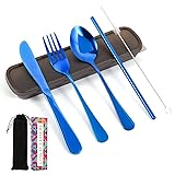 ✅IDEAL SIZE AND QUALITY-- Kitware long fork is 7.2 inch and table spoon is 6.7 inch. And made of food grade 18/0 stainless steel. The portable utensils set solid color is plated by the newest technology that is not easily fall off. The metal forks and spoons are rust-proof, durable and strong against bending. And every piece is mirror polished and smoothen for pleasant using. The glossy surface makes the reusable silverware easy to clean.