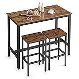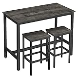 Specifications: - Color: Greige, Black - Material: Particleboard, Steel - Table Size: 47.2”L x 23.6”W x 35.4”H (120 x 60 x 90 cm) - Stool Size: 15.7”L x 11.8”W x 25.6”H (40 x 30 x 65 cm) - Product Weight: 61.7 lb (28 kg) - Max. Static Load Capacity of the Table: 220 lb (100 kg) - Max. Static Load Capacity of Each Stool: 264 lb (120 kg) Package Contents: - 1 x Bar Table - 2 x Bar Stool - 1 x Accessory Kit - 1 x Instructions VASAGLE Notes: - Children are not allowed to climb on or play with the product. - The maximum static load of the tabletop is 220 lb. Please do not place heavier objects on top. Do not exceed the maximum static load of the chairs (264 lb per chair). - The bar table should be fixed to a wall using the anti-tip kit to prevent it from tipping over. - Please do not lean back or bounce back and forth while sitting on the stool.