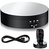 Rotating display stand 360 degree motorized rotating turntable display stand mirror cover 360 degree turntable display stand electric turntable stand with USB cable for photography products and shows Features: Rotating effect: The round mirror will rotates 360 degree, which can improve the exhibition effect in showroom, store, trade show and more, making you see the overall appearance of your goods, and bring you a comfortable use experience. Quality and durable: Our 5.4 inch electric display turntable is small in size but powerful in load, with a large load capacity of 6.6 pounds, this rotating display base offers a good stability, not easy to slip, suitable for you to directly place it on the flat surface. Specifications: Material: as your choice Color: black Diameter: approx. 5.4 inches/ 13.8 cm Package includes: 1 X 360 Degree turntable display stand with USB power cable Warm notes: Please allow slight deviation due to manual measurement. Please allow slight color difference due to different monitor.