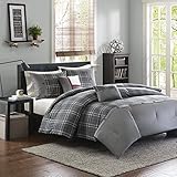 The Intelligent Design Daryl Comforter Set combines modern design with classic colors to create a sharp look. This comforter features a grey and white plaid print with a pieced design at the foot that is accented with button detailing. The 2 matching shams (1 in Twin/TwinXL) mirror the pieced look of the comforter, while 2 decorative pillows in coordinating colors add the finishing touches to this comforter set.
