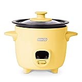 The 2-cup capacity Dash Mini Rice Cooker allows for portion control, individual meals, snacks or sides with rice, oatmeal, pasta, quinoa and more.